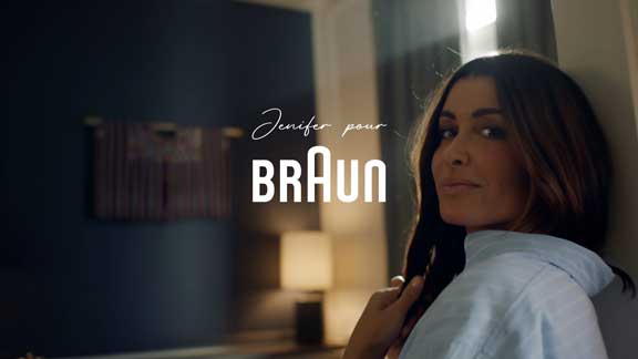 Campagne mettant en scène Jenifer comme ambassadrice Braun, incarnant une vision moderne, élégante et accessible du soin et de la performance au quotidien.