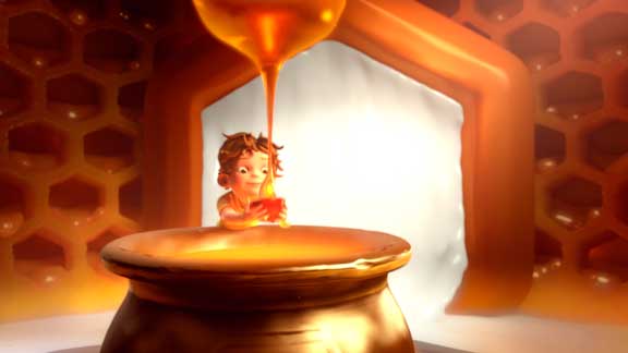 Un enfant plonge dans un univers imaginaire où le chocolat devient une montagne, il surfe sur une banane géante avant de traverser des paysages de miel, dans une aventure gourmande et ludique en 3D.